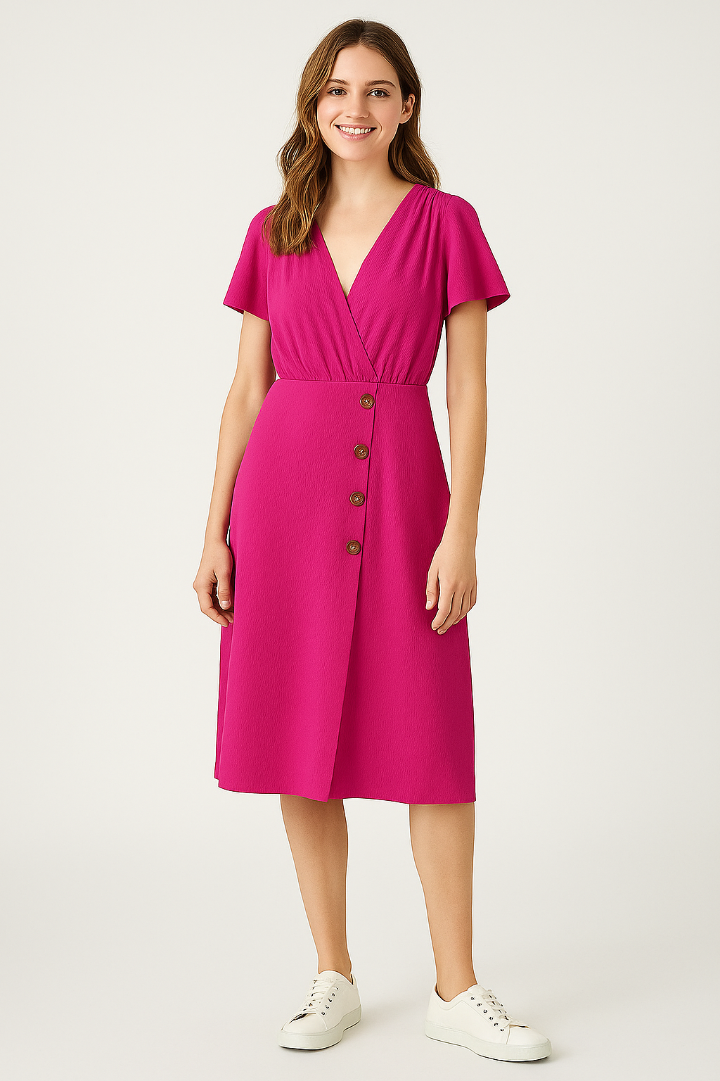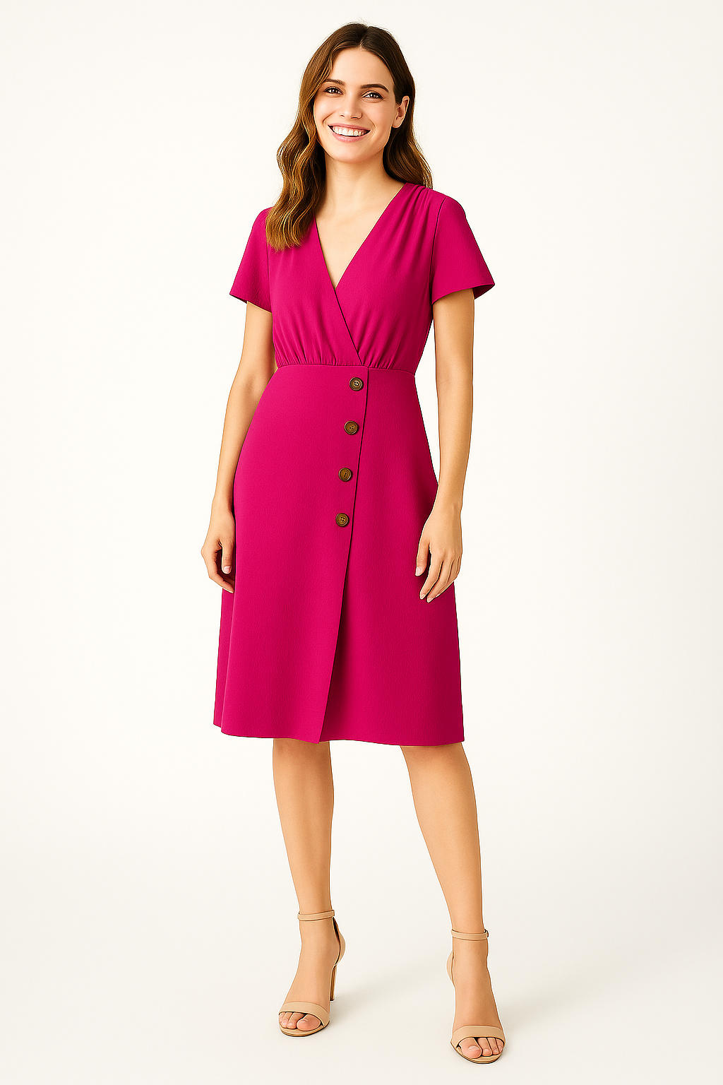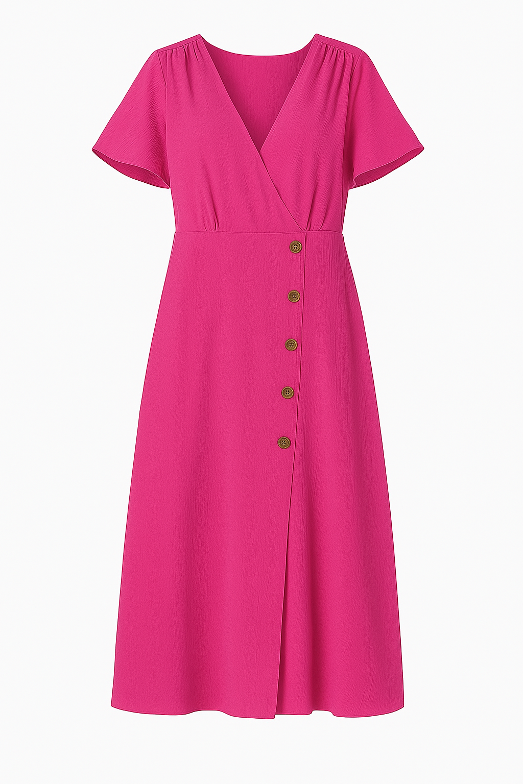 Vestido Fucsia con Botones Frontales Ligeramente Laterales